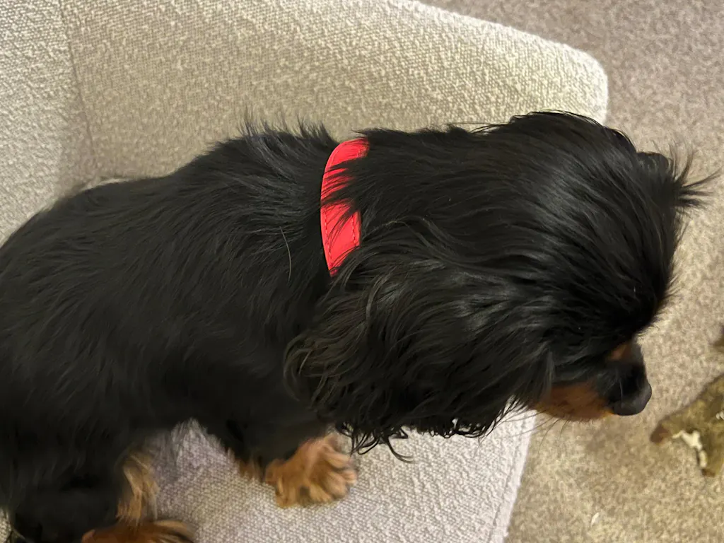 Presenting the Red Leather Dog Collar, a luxurious and environmentally conscious choice for your furry companion. Manufactured from Lignify, this vegan-friendly collar is water-resistant, non-toxic, and durable. It even features flame-retardant and anti-bacterial properties, ensuring your dog's safety and comfort in style.